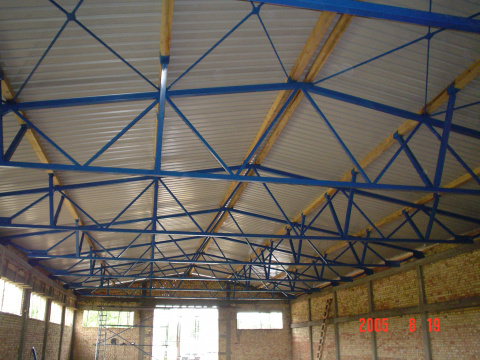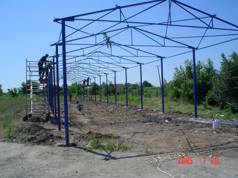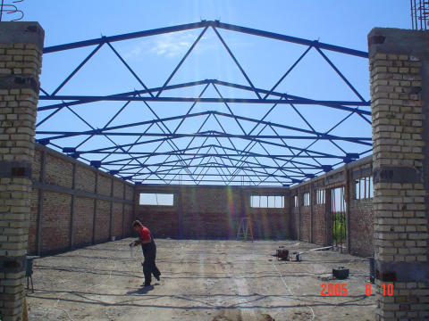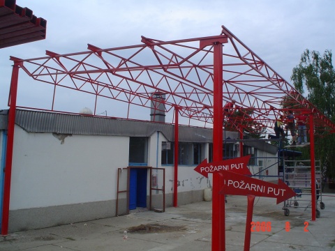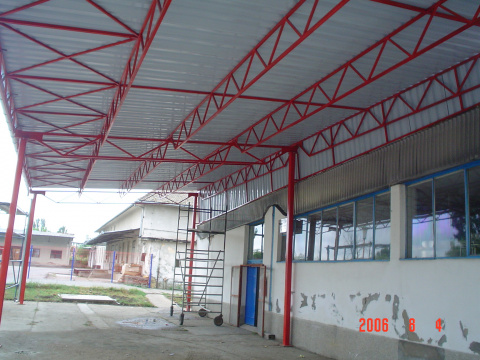 U okviru našeg proizvodnog programa bavimo se izradom i montažom čeličnih konstrukcija raznih veličina i tipova hala i nadstrešnica. Konstrukcije mogu biti pokrivene i obložene raznim tipovima materijala: trapezni limovi, razne vrste termo izolacionih panela... S obzirom da se bavimo i proizvodnjom AL i PVC stolarije kao i raznih vrsta ograda uz samu izradu hala možemo ponuditi vrata, prozore izrađene od AL i PVC-a, kao i ograđivanje raznim tipovima ograda -kovane kapije i ograde, klasične kapije i ograde od crne bravarije...
